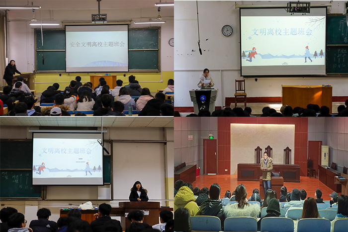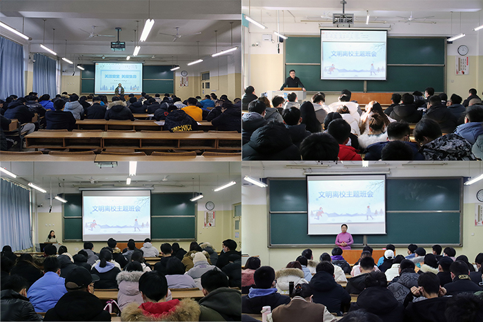 为做好寒假期间学生安全教育工作,增强学生安全防范意识。近日,437ccm·必赢国际各年级召开安全文明离校主题班会。班会由各年级辅导员主持,全体学生参会。