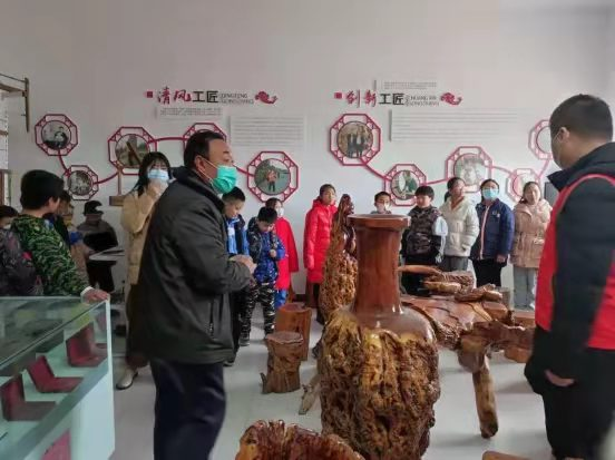 本次活动采取“新时代文明实践站+大学生志愿服务”的结对共建模式,由大学生志愿者与苏庄村新时代实践站结对。活动中阚晓童鼓励同学们主动介绍自己的兴趣爱好,与同学们一起做生动有趣的手语舞,共同朗读中华民族传统经典诗词,学习强身健体的广播体操,随后带领同学们参观苏庄村具有丰富历史文化底蕴的木雕及篆刻了我国古代劳动人民故事的浮雕石墙。“雏鹰课堂”志愿服务活动受到了同学们及家长的热烈欢迎。