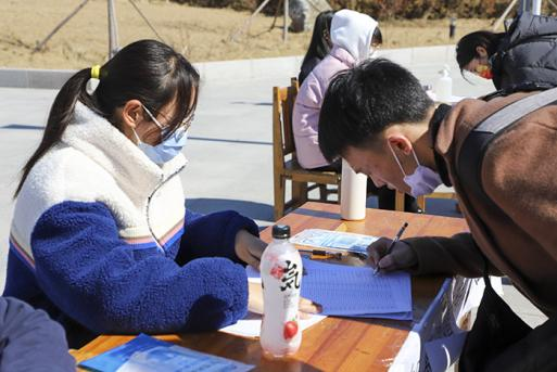 返校同学自觉排队登记信息,现场秩序井然,提高了报到效率。
