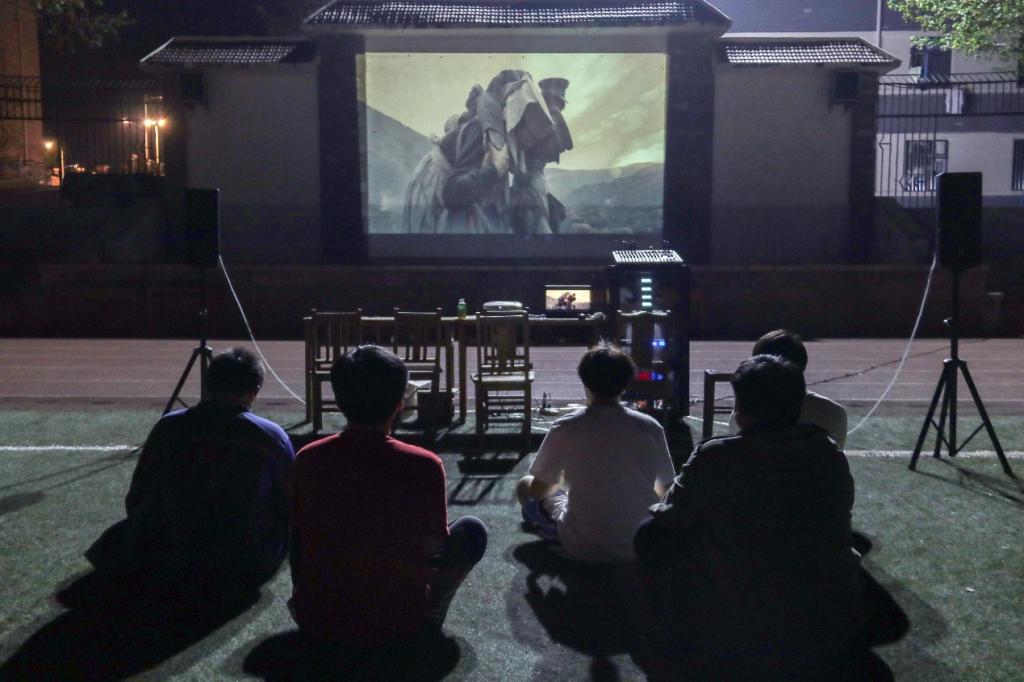 为丰富同学们课余文化生活,弘扬红色文化,激发学生爱国情怀,近日,437ccm·必赢国际在东校园田径场举办红色电影观影活动。