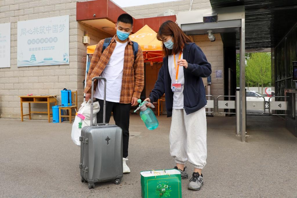 为高效有序做好校外学生返校工作,学院对返校报到等各项准备工作进行了细致安排,辅导员准确掌握学生的具体返校时间,实行“点对点”接返。符合条件返校的学生经测量体温,核验健康码、行程码和场所码,确认学生身份证件,行李消毒后进行入校登记,完成返校程序。返校学生由校区统一安排健康监测宿舍,志愿者负责返校学生在健康监测期间的生活需要,辅导员和学生干部及时跟进学生情况,摸清学生返校后的心理状况,做好心理疏导,积极做好学生的服务保障工作。