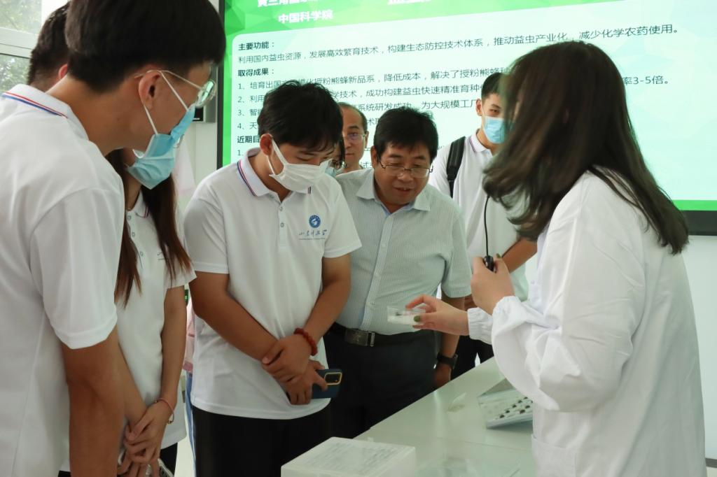 在这里,实践团队成员看到了自主研发的智能设施农业装备,了解了益虫资源利用与生态防控研发平台、耐盐碱植物数字化育种平台和盐碱地藜麦产业种植等科技+农业的新发展模式,并在示范区工作人员的引领下到试验田研究耐盐碱苜蓿以及马铃薯生长情况。