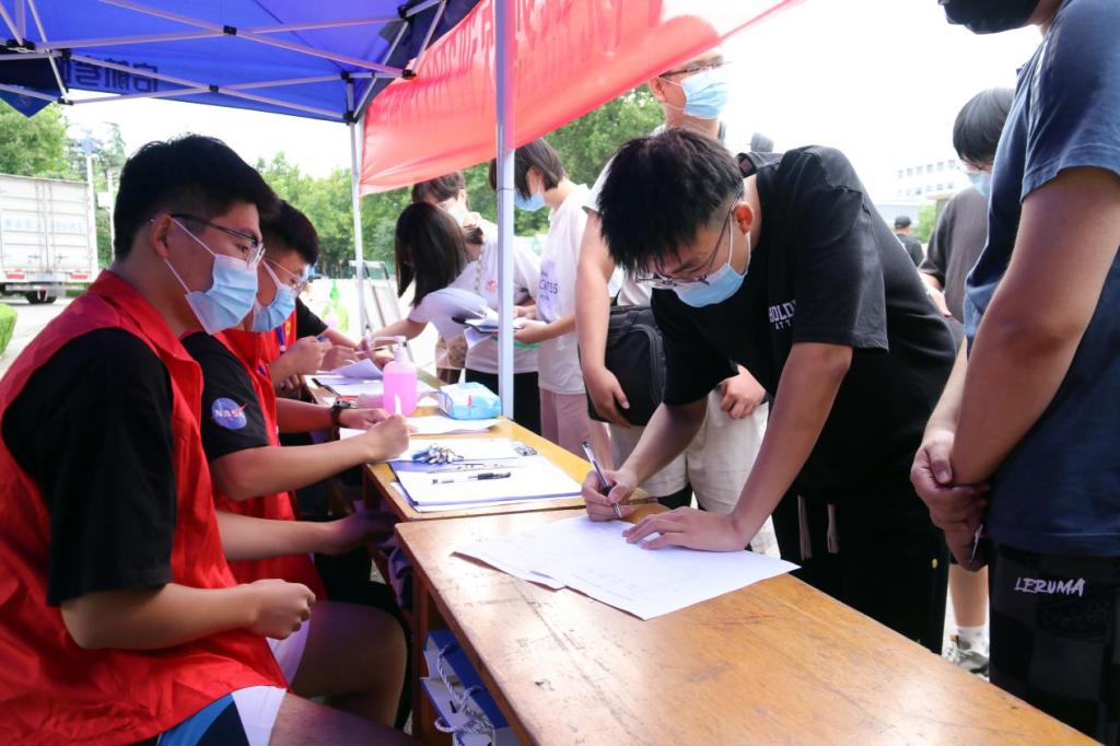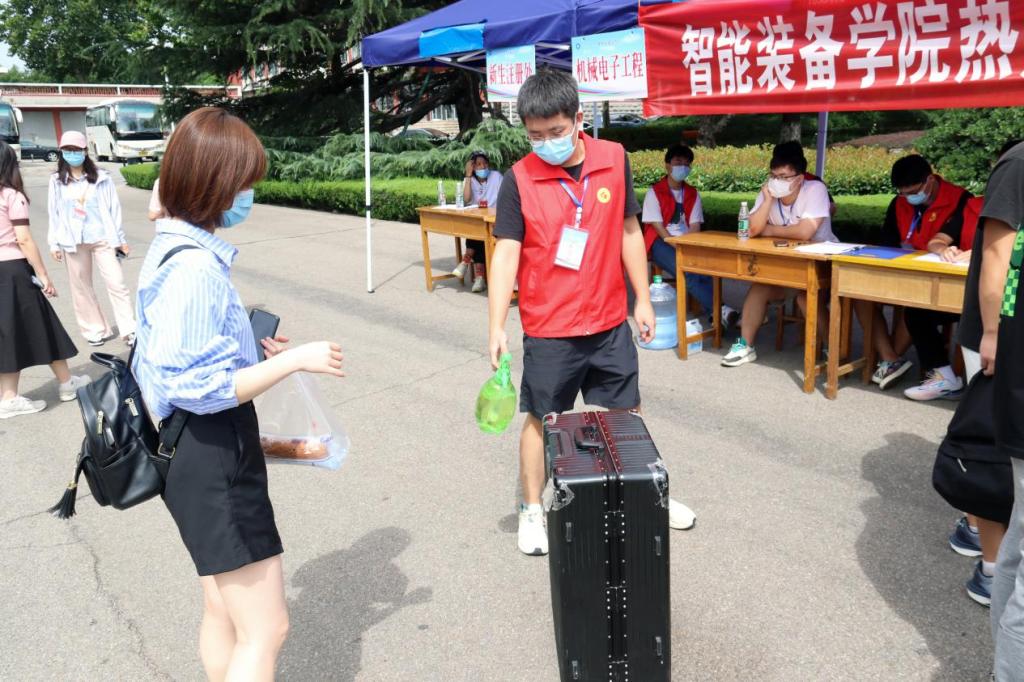 清晨,新生辅导员和学生党员、学生志愿者组成的迎新志愿者服务队早已等候在校门口。七点半开始,新生们陆续开始报到。学院严格按照疫情防控要求进行安排部署,分别在东校园南门和西校园东门口设立报到点,新生报到时出示行程码、健康码和48h内核酸证明,核验无误后由迎新志愿者“一对一”陪同完成注册、宿舍分配、领取物资和校园卡办理等事宜。在迎新过程中,辅导员老师耐心解答同学们的疑问,迎新志愿者们热情地接过新生的行囊,忙碌地穿梭于校园的各个角落,带领新生熟悉校园环境,介绍入校注意事项,用爱心去迎接每一位新同学的到来,让每一位新生都感受到了437ccm·必赢国际这个大家庭的温暖。