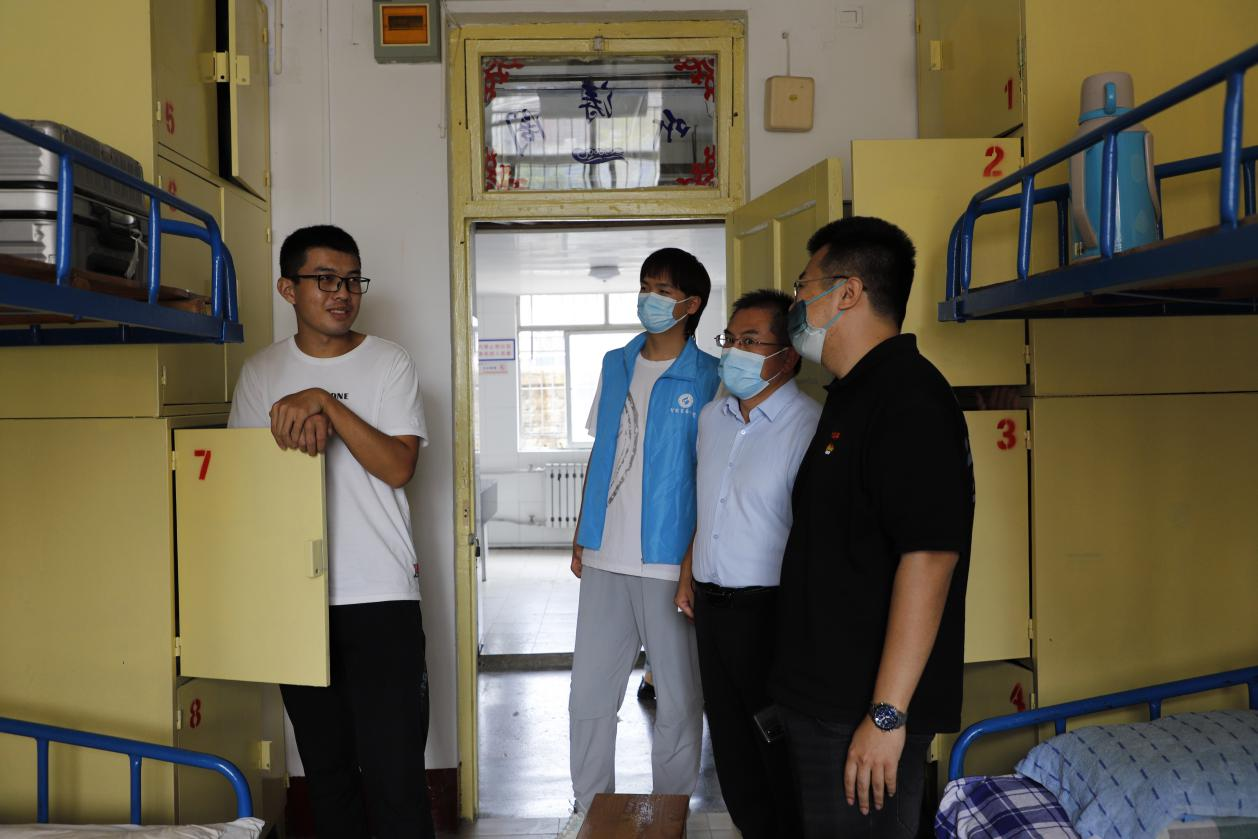 8月27日,437ccm·必赢国际迎了2022级第一批新生,学院团委副书记周立志,辅导员老师郭艳培、秦泽川前往学生宿舍慰问新生。