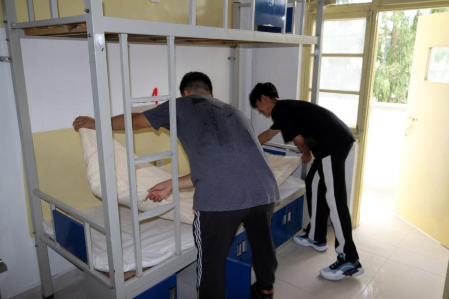 工作前期,辅导员认真研究宿舍卧具上床工作,对党员干部进行工作流程指导,叮嘱同学们搬运过程中严格落实搬运流程,注意个人安全的同时高质量、高效率完成新生卧具上床工作。同学们反复清点新生的卧具用品,确保准确无误后扛起一袋袋卧具向宿舍楼内搬运,组织有序、齐心协力,仔细地把卧具放置到每一位新生床位上,为他们铺好床位、打扫宿舍、排除安全隐患,力争让每一位新生切实感受到智能装备学院大家庭的温暖和关怀。