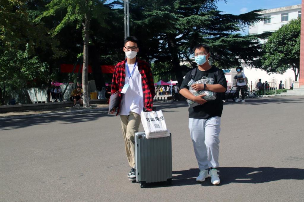 根据疫情防控安排,新生家长止步缓冲隔离区,工作人员核查新生的健康码、行程码以及48小时内核酸检测报告后,由学院辅导员及学生志愿者迎接并协助新生完成报到,为新生提供“一条龙”便捷服务。