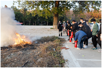 为保证本次活动顺利进行,安全管理部对演练场地进行提前勘察,做好应急方案及措施,以应对各种突发情况。活动伊始,安全管理部消防科科长王新稳向师生讲述了火灾的危害以及校园消防安全的重要性,详细讲解了如何预防火灾的发生以及火灾发生时身处各种情况下该如何进行正确的自救。随后,工作人员通过模拟火灾发生现场,分类介绍灭火器的种类,亲自示范灭火器的正确使用方法步骤。师生在现场工作人员的悉心指导下进行了体验,圆满地完成了本次灭火演练。