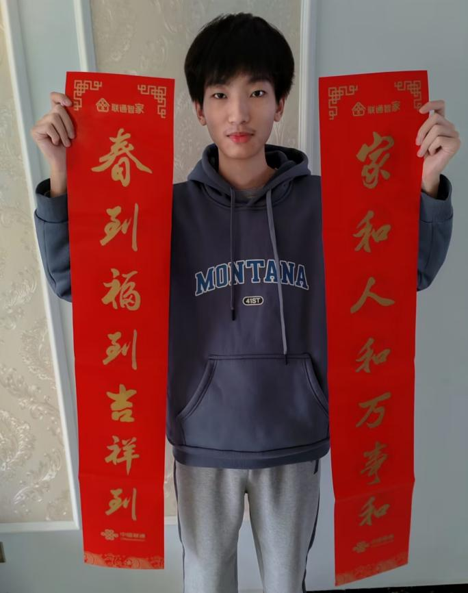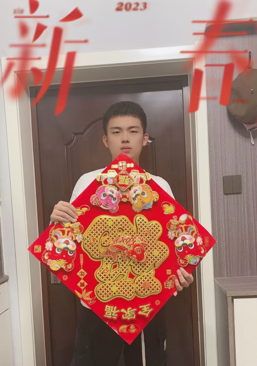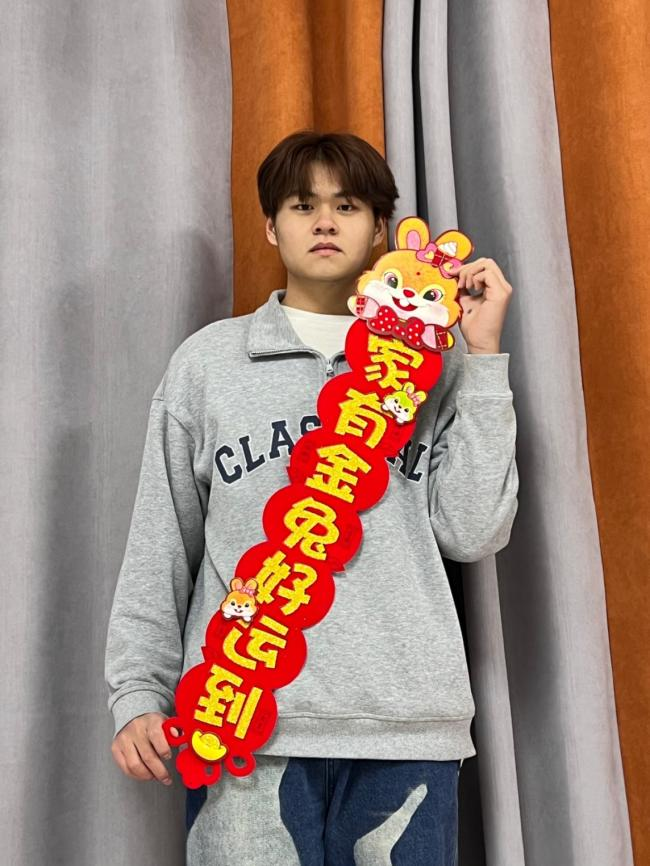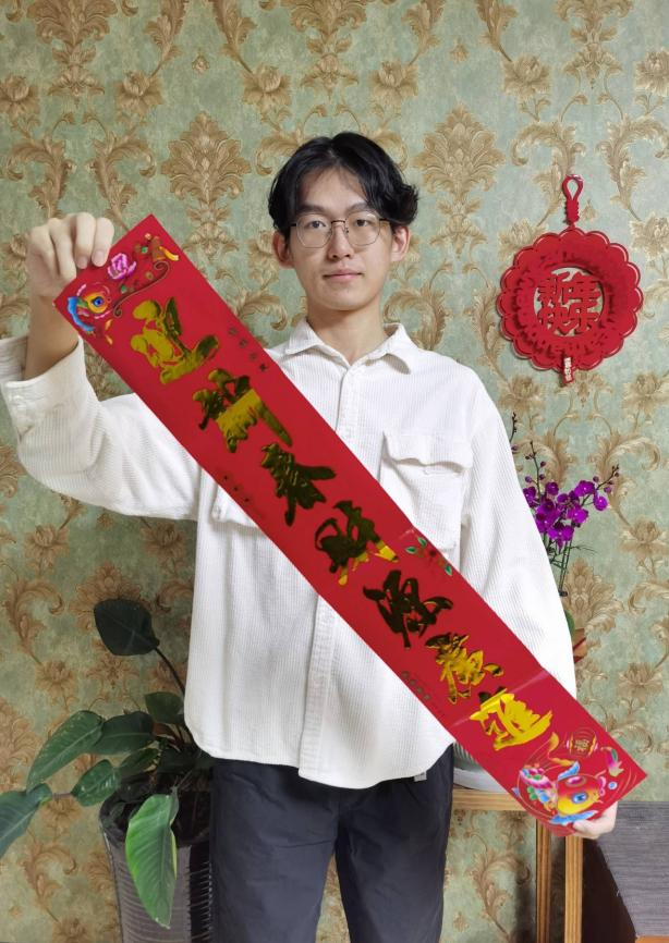 过程装备与控制工程21-4班杜忠业在山东聊城送来迎新祝福,“贺佳节满门吉祥,迎新春全家幸福。”祝愿祖国在新的一年里步步繁荣,开创辉煌,祝愿山东科技大学的老师和同学们兔年美满乐,幸福万年长!