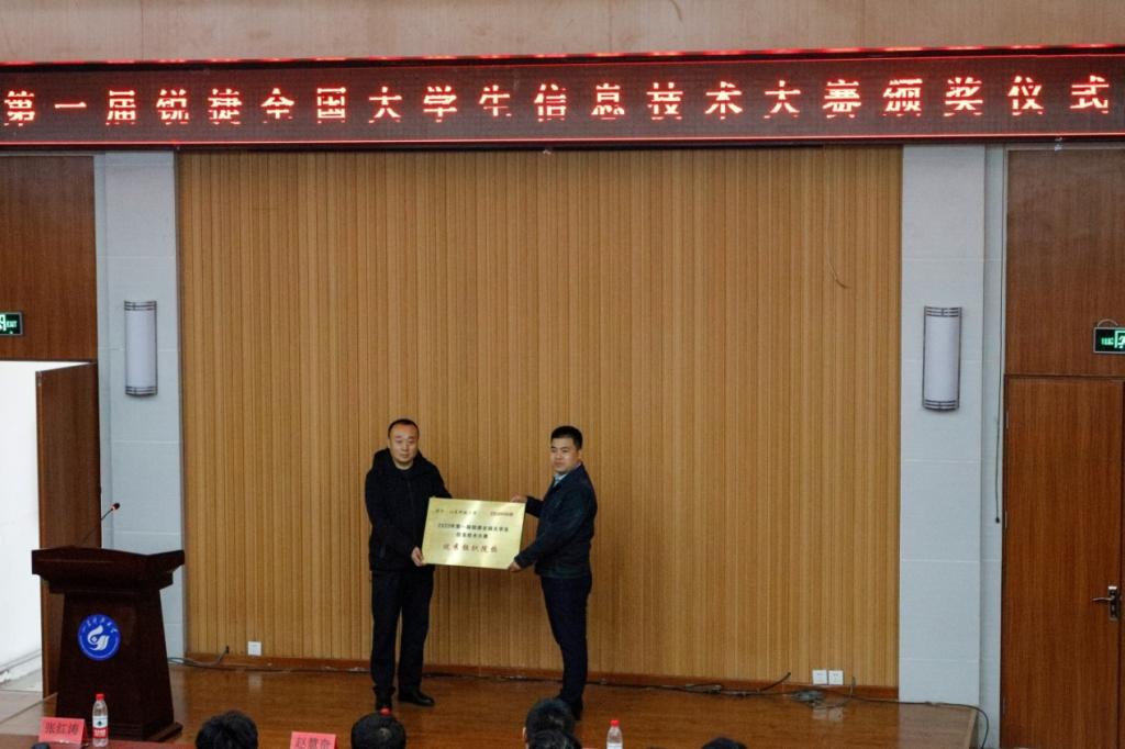 颁奖仪式伊始,谢清勇介绍了首届锐捷全国大学生信息技术大赛的整体赛况,来自全国36个战队共计108名选手参加了决赛阶段的比赛,最终学院两支代表队荣获第一名和第三名的好成绩,并被授予优秀组织院校。学院副院长赵慧奇、锐捷ICT人才教育中心拓展部经理张红涛为获奖学生和优秀指导教师颁发了奖杯和荣誉证书。