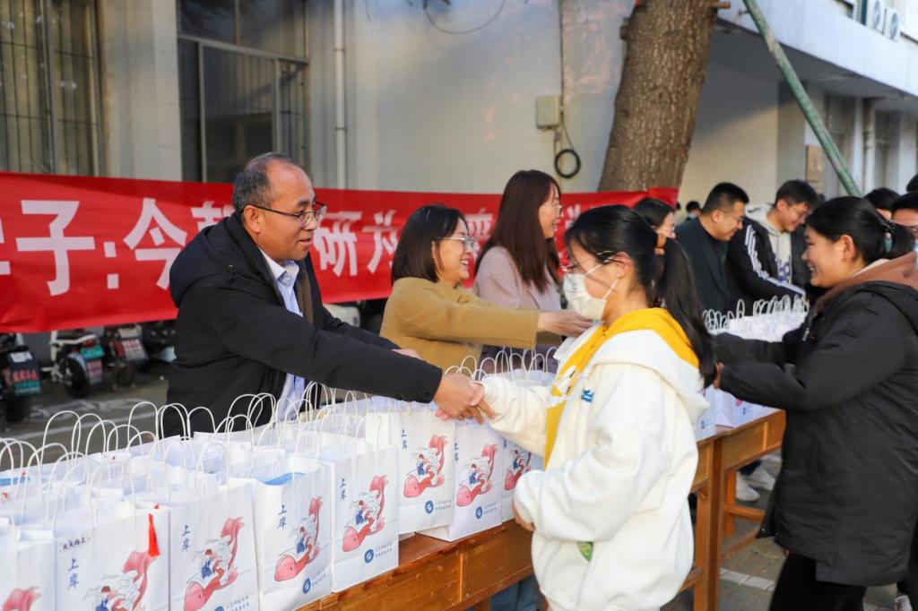 辅导员老师们为考研的学子们发放考研大礼包。礼包中的涂卡笔预祝学子们考试之时“如来神笔”、“落笔生花”、超水平发挥;旺旺仙贝祝学子们运旺时盛,不负众“旺”;香橙寓意大家心想事“橙”,一战“橙”硕;祈福祝愿卡祝学子们金榜题名,逢考必过。“考研很苦,也很难,要同时忍受身体和精神上的煎熬,礼物虽小,但如果能为考研学子送出一点温暖也是值得的”辅导员老师说道。备考时光白驹过隙,回首过去的备考漫漫长路,有过失意,有过孤单,有过骄傲。在这个备考的关键时期,这些礼物带给同学们的不仅仅是物质上的礼物,更是精神上的支持和鼓励。