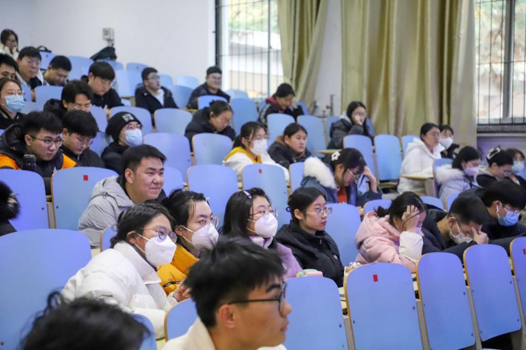 一句鼓励温暖的话语会给考研学子带来力量,会给予他们前行的动力。在考研动员会上,学院党委书记黄德杰代表学院向同学们送去最真挚的祝福,鼓励考生积极备考,要稳定心态不骄不躁,脚踏实地的复习,争取在考试中发挥出自己应有的水平。学院学生工作办公室主任、团委书记谢清勇提醒考生们在流感多发的冬季要注意自己的身体健康。辅导员老师们也给予考研学子真挚的祝福:“今年一研为定,来年定为研一”。苏娜、林晓霞两位专业课老师也给考研学子们仔细讲解考前的注意事项,叮嘱他们要充分利用剩余的时间,查漏补缺。一句句温情的话语,一声声亲切的嘱托,无不体现着老师对于学生的期望和祝福。学院会为同学们保驾护航到最后一刻,相信日夜的奋斗定会上岸。