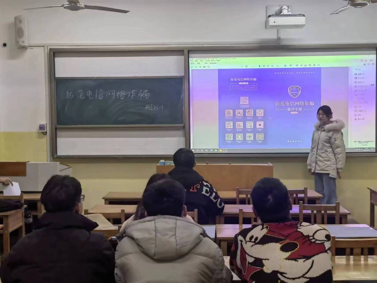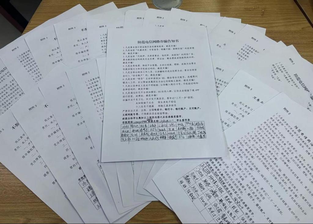 会上,各班负责人详细生动地为学生们介绍了网络诈骗的种类、手段及防范方法,讲述了生活中常见的诈骗手段,如虚假投资、网络购物诈骗、冒充熟人诈骗等,提醒学生在日常生活中要提高警惕。随后,各班学生签订了防范电信诈骗告知书和不参与电信网络诈骗犯罪承诺书,增强了学生的防电信诈骗意识。
