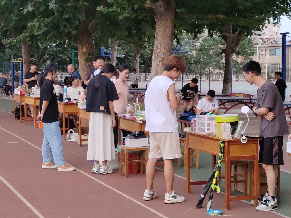 “跳蚤市场”活动开始不久,就吸引了许多“顾客”前来询问,“商贩”纷纷将自己闲置的物品,涵盖书籍、文具、饰品乃至手工艺品带到市场进行交易。这些物品种类繁多且价格实惠,迅速吸引了众多同学的关注和参与。通过这一平台,同学们不仅可以通过交换或售卖物品实现资源的再利用,还可以在交易中锻炼自己的沟通交流能力。同时,活动也倡导了环保理念,鼓励同学们减少浪费,保护环境,以实际行动投身于绿色校园的建设中。
