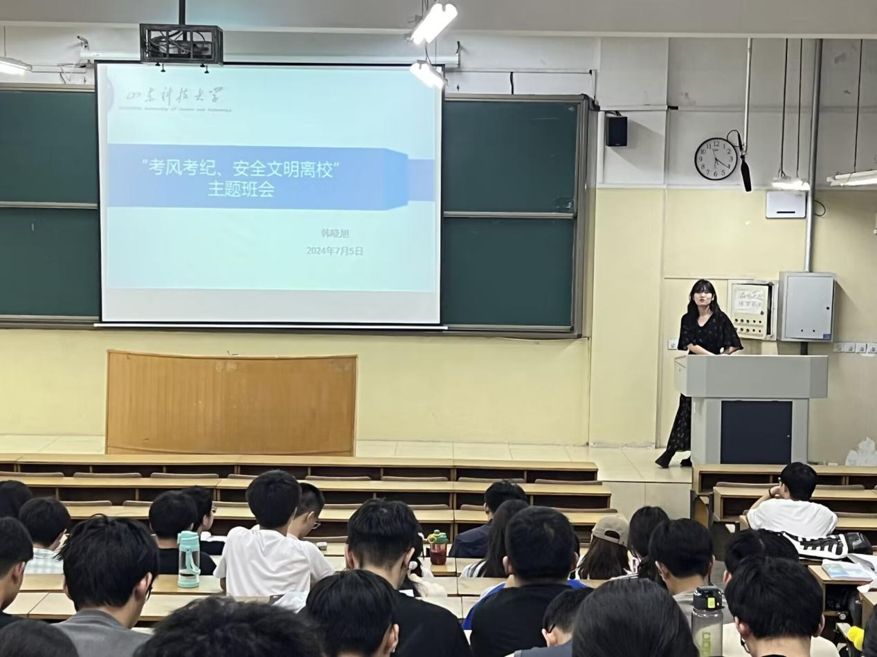 会上,各辅导员传达了校区《二〇二四年暑假前后共青团工作安排》《关于做好2024年暑假前后有关学生工作的通知》,并结合学院的具体情况对暑假放假工作作了详细安排。重点强调学生离校前要做好宿舍安全检查工作,携带好个人贵重物品,关好水电门窗,返乡途中要注意人身安全、财产安全和交通安全。辅导员还教育引导学生在暑假期间要注意饮食安全、网络安全,度过一个安全、文明、健康的暑期。辅导员们提出三点要求:一是牢固树立安全为先理念,所有学生应严格遵循离校或留校的相关规定,离校前应仔细整理个人物品,妥善保管贵重物品,并确保按时返校参加课程学习。二是结合学院实际,对“青马工程”、暑期“三下乡”等工作,希望同学们在假期放松之余也要保持学习之心,积极参与暑期实践活动,多读书多学习,度过一个快乐、充实、有意义的假期。三是希望同学们能够紧跟党的步伐,充分发挥自身的专业优势,利用好假期时间不断学习、自我沉淀,找准个人定位,以实际行动贡献自己的价值,实现自我成长。