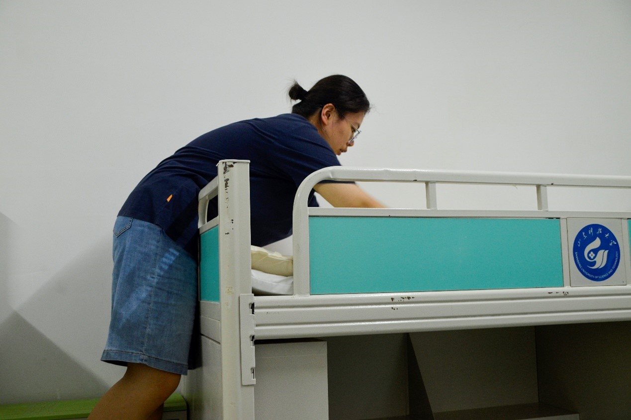 工作前期,辅导员们制定了宿舍卧具上床的工作方案,对学生干部及志愿者进行工作流程指导,叮嘱同学们在搬运过程中的注意安全规范,确保每位参与者在高效完成任务的同时,能够时刻注意个人安全。志愿者们细心核对床垫、被褥、脸盆等生活用品的数量,核对无误后扛起一袋袋卧具向宿舍楼内搬运,仔细地把卧具放置到每一位新生床位上,为他们铺好床位、打扫宿舍、排除安全隐患,整个过程齐心协力、组织有序。