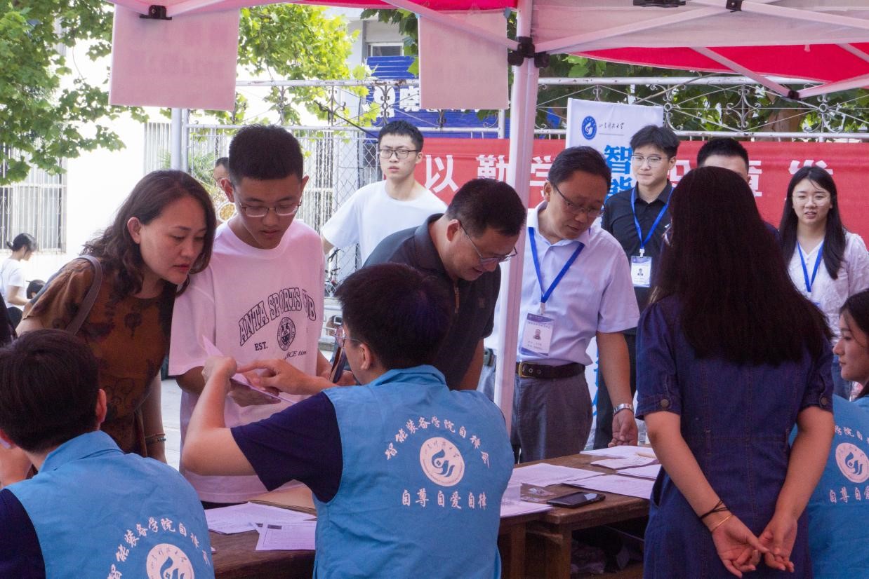 学院党委书记黄德杰、党委副书记兼副院长王衍国,学工办主任、团委书记谢清勇分别前往东、西校园的报到现场指导迎新工作,黄德杰对师生志愿者在场地布置、新生接待等方面的辛勤付出给予肯定与鼓励,嘱托全体学生要端正服务态度、一定要耐心、热心、细心,用心用情做好迎新工作,为远道而来的新生同学以及家长提供“最高效、最便捷、最有用”的帮助,积极营造“高效、有序、稳定、热情”的迎新氛围。