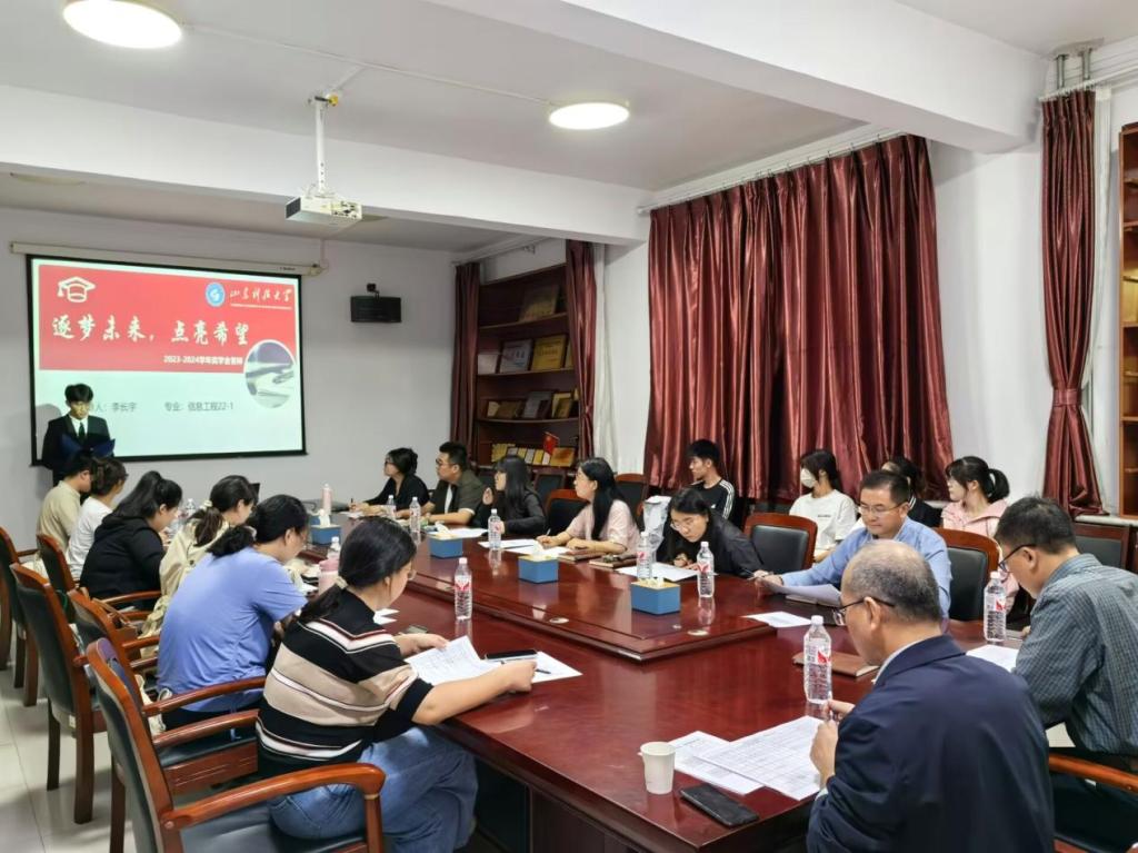 此次答辩会秉持“公平、公正、公开”的原则,经过学生个人申请、学院审查,最终有12名同学进入答辩环节。答辩会上,孙斌首先介绍了此次国家奖学金和省政府奖学金的评选原则、流程及评分规则。12位候选人采用PPT演讲的形式从自我介绍、思想状况、学业成绩、工作经历、科技创新及社会实践等方面进行汇报展示。评委根据国家、省政府奖学金评比要求,综合多方面进行评议,最终确定了3名国家奖学金和2名省政府奖学金的拟推荐获奖候选人。