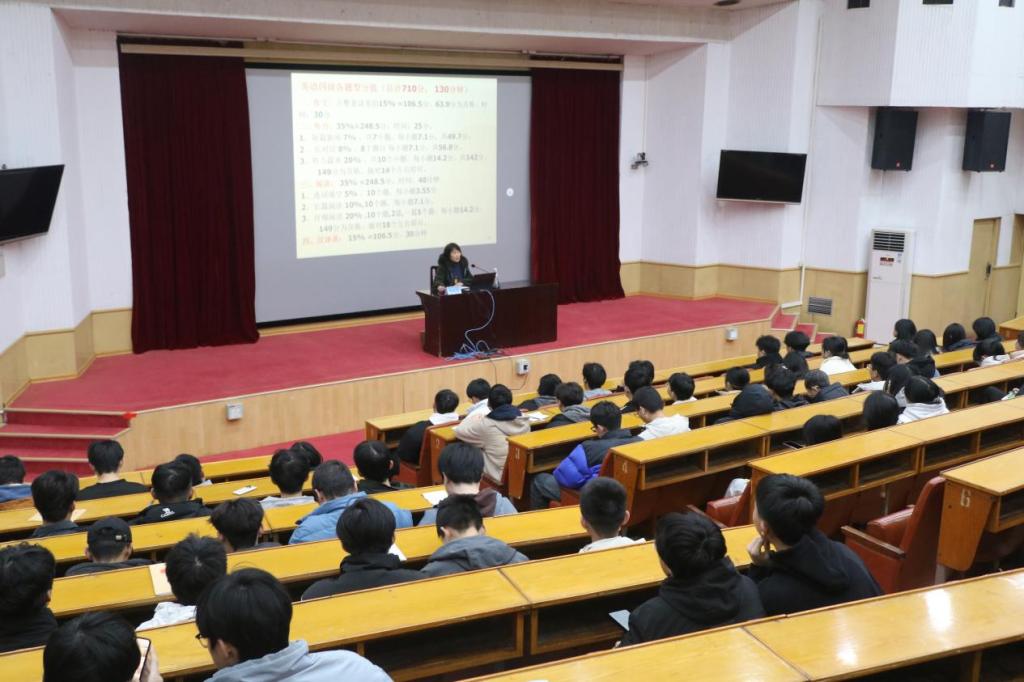 11月28日,437ccm·必赢国际邀请公共课教学部李家霞教授在东校园四号楼报告厅为2023级学生做大学英语四级讲座。