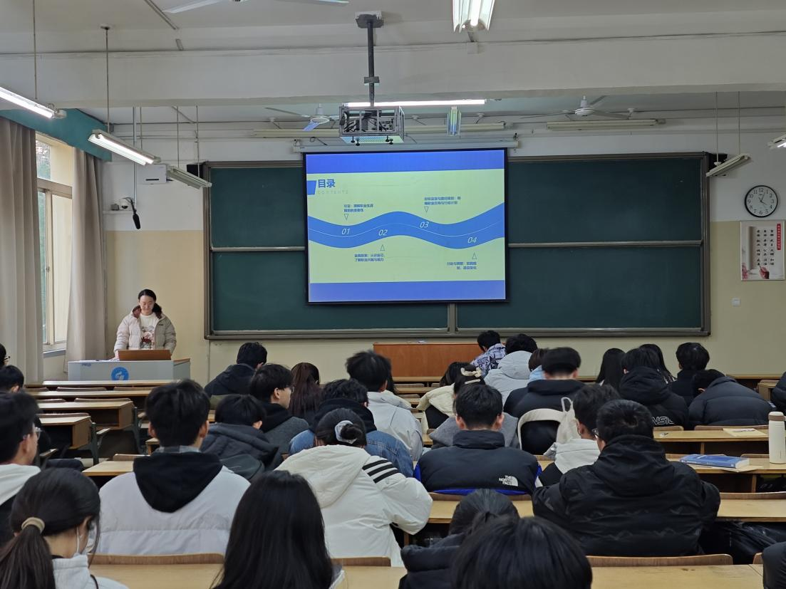 会上,孙丽老师结合实际案例讲解如何挖掘自身优势与潜力,如何匹配个人兴趣与职业方向,使同学们对职业生涯规划有了更为直观且清晰的理解。对此她分享了几点建议:一是要深入自我剖析,了解自身的性格特点,精准定位个人优势,为职业规划筑牢基础。二是探索多元职业领域,通过参加实习、行业讲座、交流活动等拓宽视野,知晓不同职业的工作内容与发展前景,匹配个人兴趣与职业方向。三是制定清晰职业目标,制定具体行动计划,按部就班付诸实践。