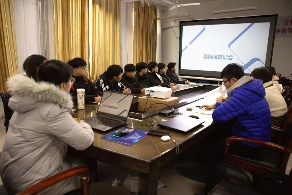 12月12日,437ccm·必赢国际在西校园1A305举办题为“新闻写作能力培养与提升”的学生干部培训会议,会议由辅导员蔡婧婧主持,新闻中心全体成员参会。
