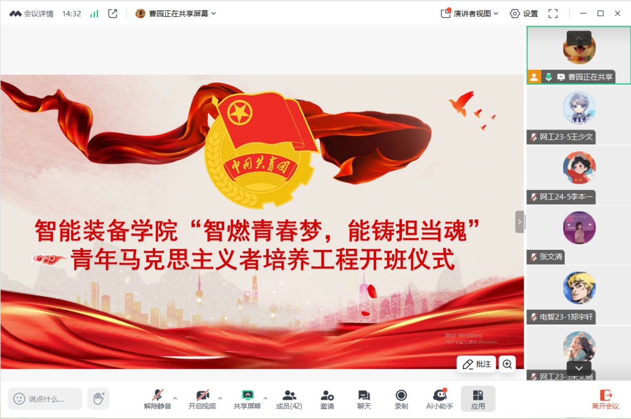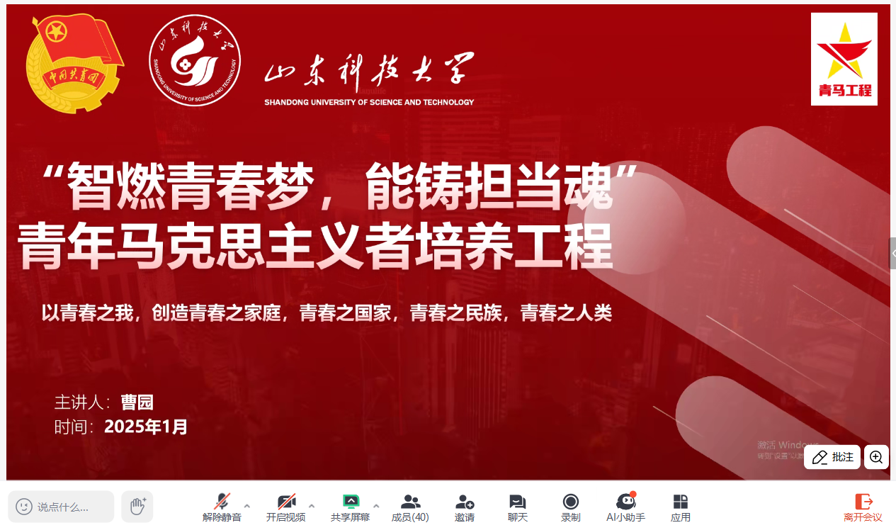 为进一步学习贯彻习近平新时代中国特色社会主义思想和党的二十大及党的二十届三中全会精神。1月14日,437ccm·必赢国际举办了“智燃青春梦,能铸担当魂”青年马克思主义者培养工程开班仪式暨第一次培训会。会议由团委副书记曹园主持。