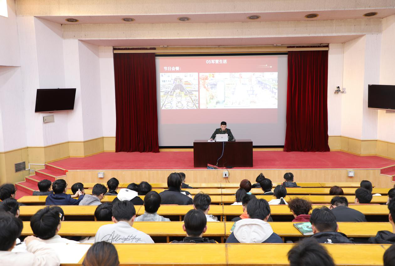 培训会由网络工程2022级退役复学学生宋笑天主讲。他通过ppt展示的形式,从军队常识、征兵热点、入伍流程等方面介绍了我国现代化军队基本情况、最新征兵政策及入伍发展路径等内容。同时,他还结合具体事例为同学们重点解读了入伍体检标准、保留学籍、专项津贴等热点问题。最后,培训会特别准备了“军旅叙事”专题,播放戍边英雄陈祥榕、退役士兵成长档案等视频、立体呈现“00后”青年在军营淬炼成钢的生动案例,呼吁同学们踊跃参军入伍,贡献青春力量。