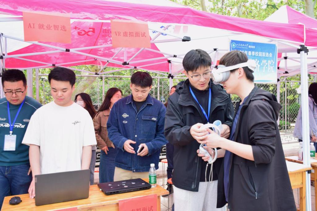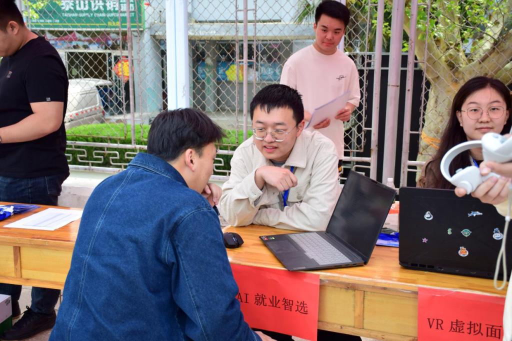 为进一步做好毕业生就业服务工作,4月11日,泰安校区举办2025年春季校园双选会,学院结合专业特色,创新设置“VR+AI”智慧就业体验专区,提升就业指导实效。