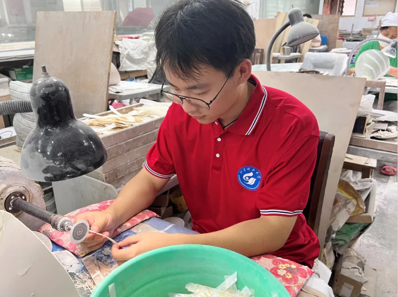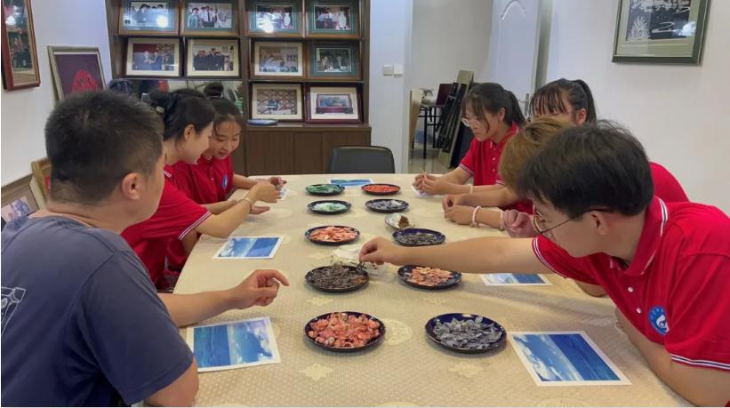 随后,队员们前往了青岛贝雕工艺品厂进行实地参观。在车间里,工人们熟练地操作着各种工具,对贝壳进行精细的加工处理。通过与工人们的交流,队员们详细了解了贝雕工艺的制作流程和技巧。在参观学习的过程中,队员们还亲手体验了贝雕工艺的制作过程。在工厂工人的专业指导下,大家尝试了对贝壳进行初步的切割和打磨,深刻感受到了这一传统工艺的独特魅力。