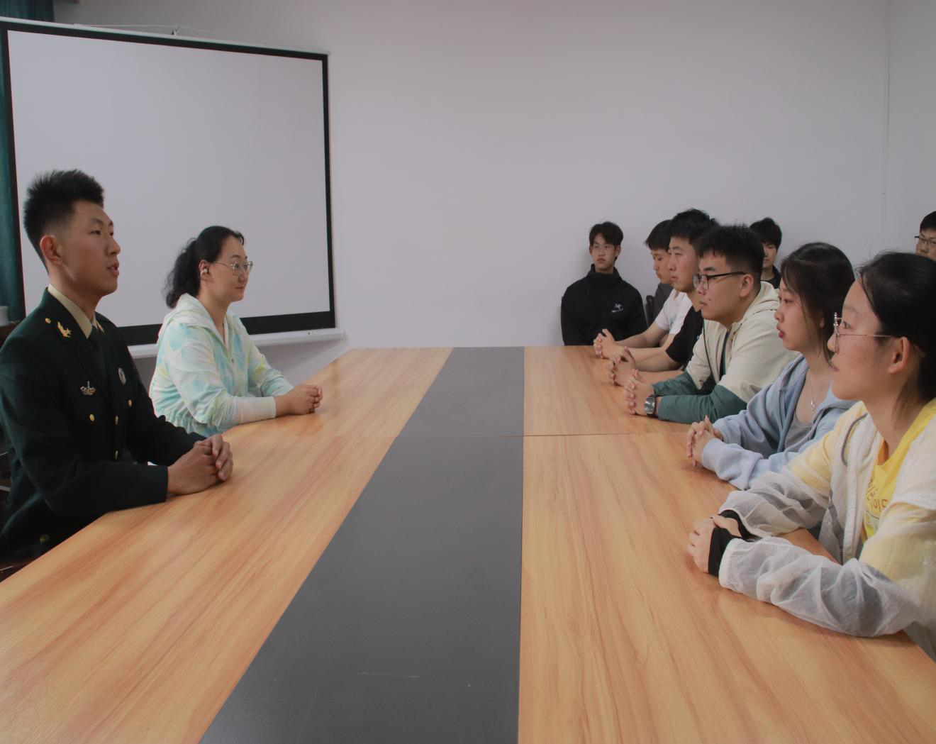 宣讲会上,付政运详细介绍了今年征兵政策、报名流程、入伍条件以及退役后升学就业优惠政策等内容。随后,他结合自身军旅经历讲述了部队的训练模式,让同学们对军营生活有了更全面的了解。在互动答疑环节,面对同学们关于服役适应、职业发展等提问,孙丽与付政运一一作出解答,让大家对征兵政策与军营生活有了更清晰、准确的认识。