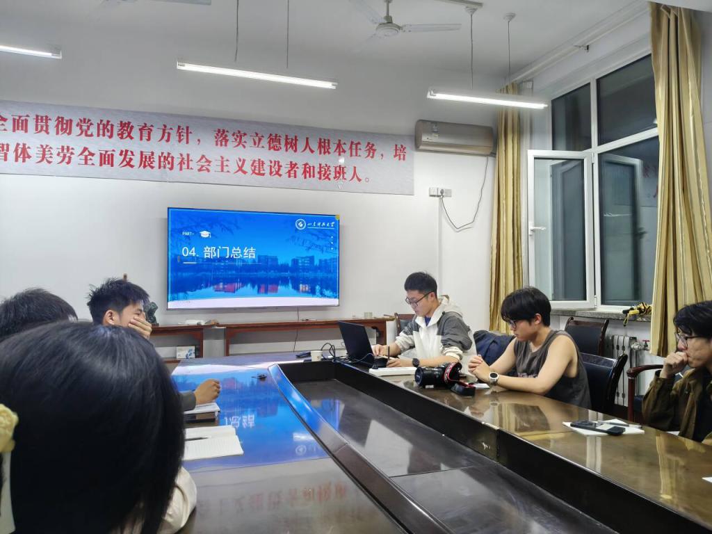 新闻媒体部部长王少文、副部长赵凯诚分别作了经验分享。赵凯诚从相机参数设置、构图方法及光线运用等基础理论入手,结合优秀新闻摄影作品实例,深入解析如何精准捕捉新闻瞬间、突出报道主题。同时他还现场设置了实操演示环节,帮助参会同学巩固理论知识。王少文结合自身丰富的稿件写作经验,系统讲解了新闻稿件的选题策略、标题拟定技巧及内容架构要点,着重强调新闻写作的时效性与真实性原则,并通过典型案例分析,传授实用写作技巧,同时分享了许多实用的写作技巧与案例,让部门成员对稿件写作有了更深刻的认识,提升了参会同学的写作素养。