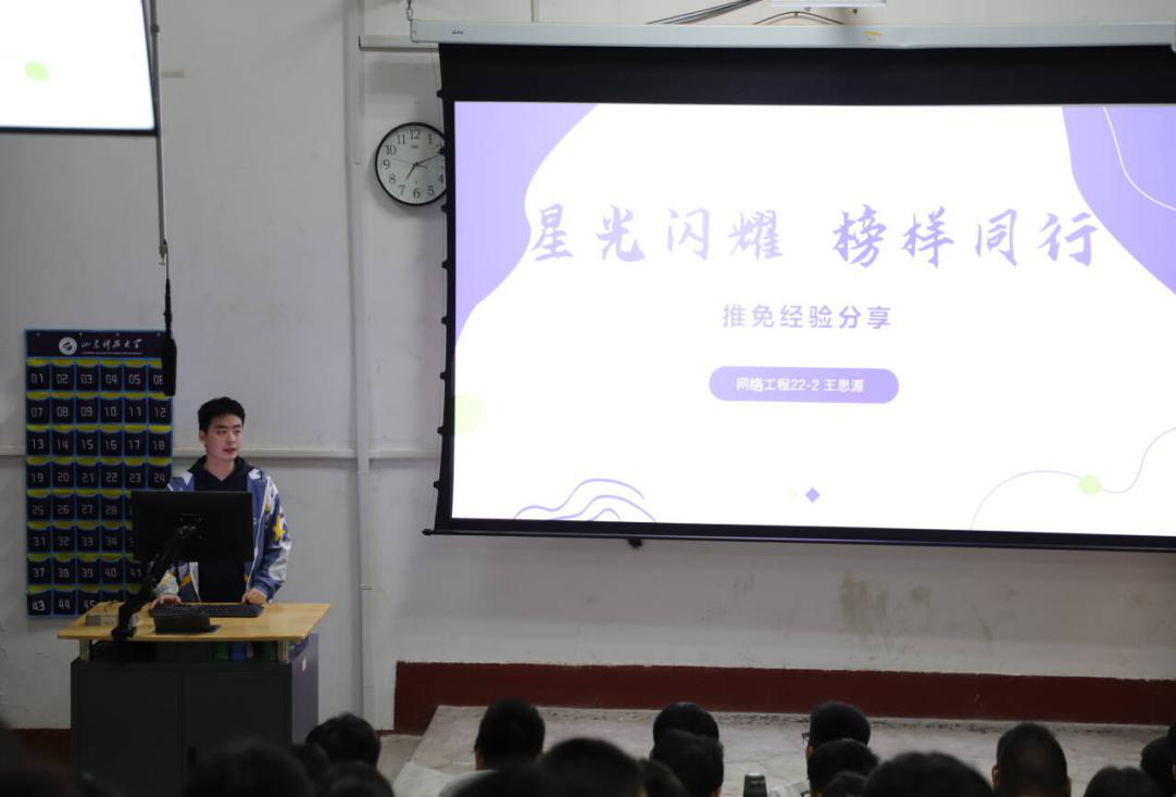 为进一步深化新生入学教育,加强学风建设,充分发挥优秀学子的榜样示范作用,10月15日,437ccm·必赢国际于西校园1A107教室举办学院十大优秀学生宣讲会,2025级网络工程专业新生全体参会。