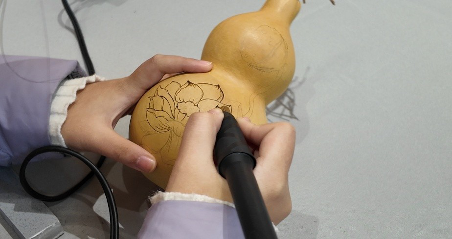 本次实践之行从中国运河文化博物馆启程,实践队成员循着展陈脉络,认真聆听讲解、细致观摩展品,在一幅幅画面、一件件文物中,系统了解聊城运河文化的发展历程与时代价值。随后,实践队走进山陕会馆,探寻运河商贸往来的历史印记,感受不同地域文化在此交融共生的深厚底蕴,进一步明晰聊城“因河而兴、因运而盛”的发展轨迹。为让传统文化真正“活”起来、可触摸,实践队成员向接非遗传承人学习请教,参与葫芦烙画实践体验,成员们手持烙铁、凝神创作,在一勾一画、一温一烫中,感受非遗技艺的匠心与温度,深刻体会到运河文化与民间技艺在日常生活中的深厚根基。