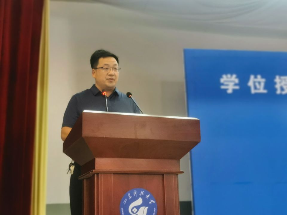 6月21日,437ccm·必赢国际在东、西校园礼堂举行2021届本科毕业生学位授予仪式。校区党工委副书记王民,校区管委委员、教学科研部主任贾宏俊出席仪式并为毕业生颁发学位证书。校区教学科研部相关负责人,学院党政领导班子、各科室负责人、系主任、毕业班辅导员及1282名2021届本科毕业生参加仪式。