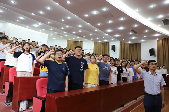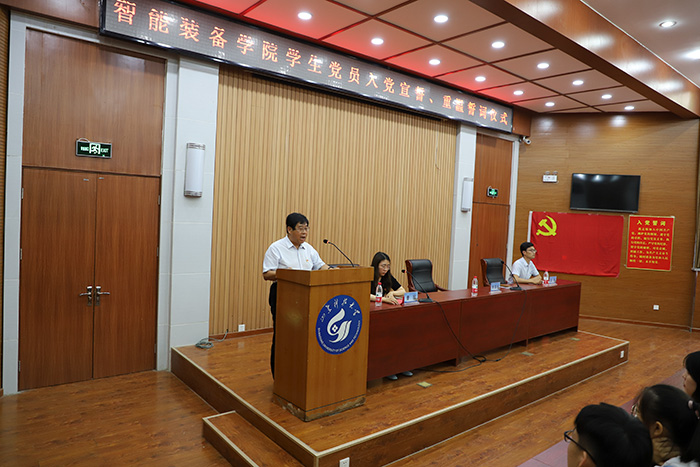 黄德杰、裴国栋向全体与会人员提出要求:一是要恪守入党誓词,以一名共产党员的标准严格要求自己。要用自己的模范行为去实践入党誓词,终身为之奋斗。二是要充分发挥先锋模范作用,在各自的工作和学习岗位上体现党的先进性,时时刻刻铭记自己中国共产党党员的身份,成为学生工作中的一支重要的、能战斗的力量。三是要加强学习与实践,使工作素养和工作能力跟上时代的节拍。加强党史的学习,深刻了解近代以来中国人民和中华民族不懈奋斗的光荣历史和伟大历程,坚定不移跟党走,勇做新时代前列的奋进者、开拓者、奉献者,让青春在为祖国、为民族、为人民的奉献中焕发绚丽光彩。